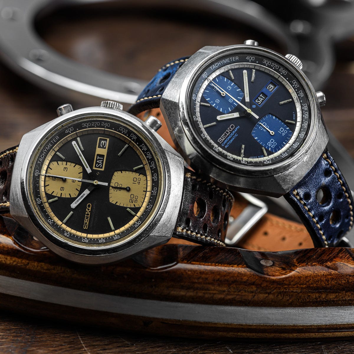 A fantastic vintage style racing watch strap made from vegetable-tanned top grain calf leather, made by hand at our partner's workshop in Valencia, Spain.