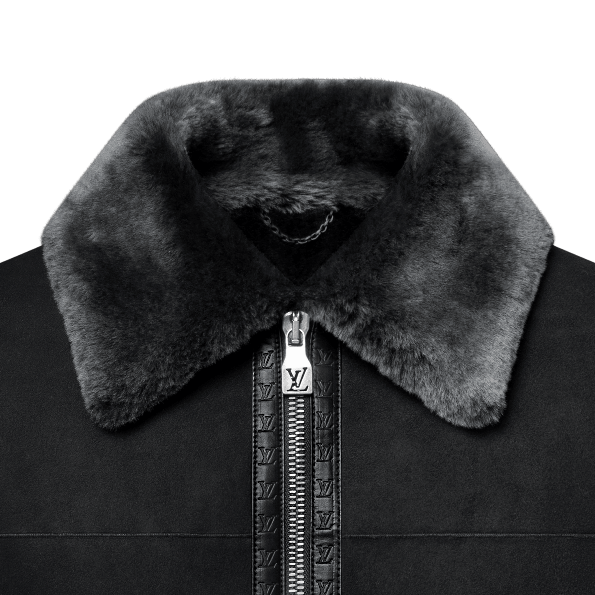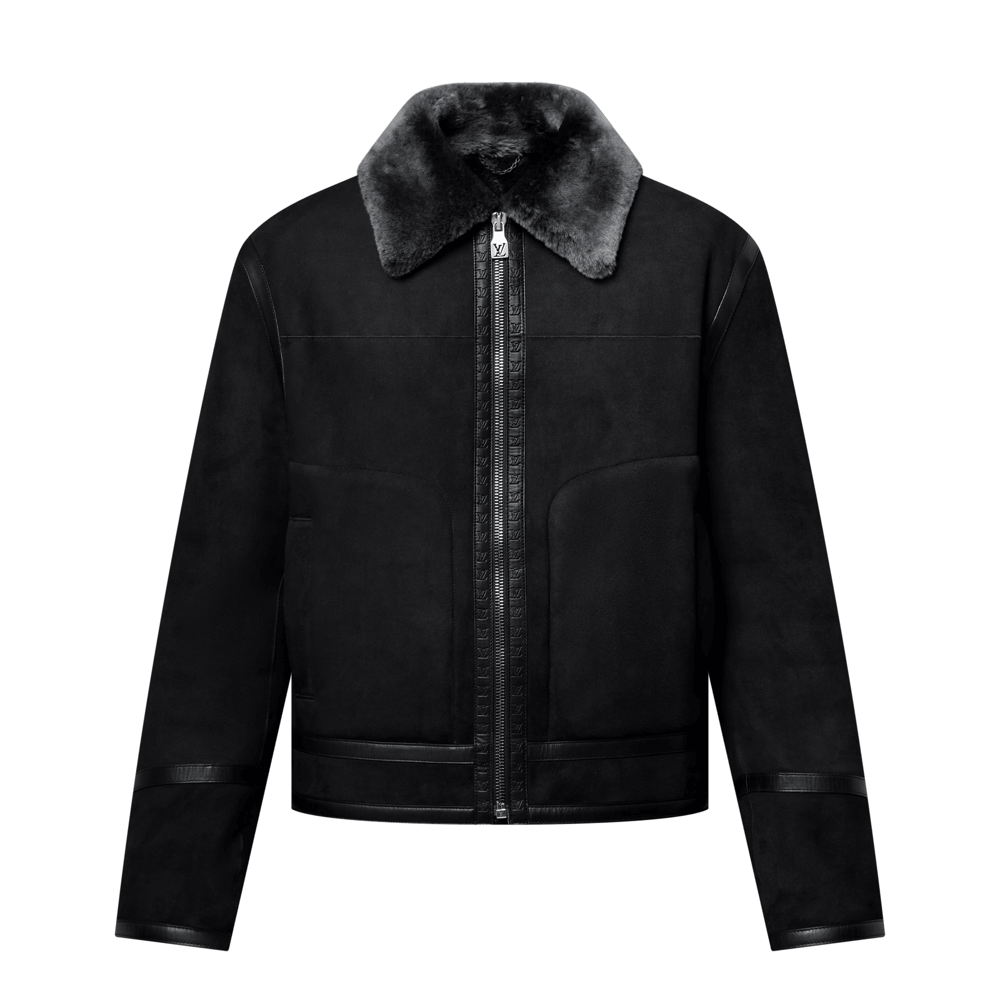 This exclusive shearling blouson features ultra soft wool dyed with a sophisticated gradient effect. The matte suede is accented with smooth tone-on-tone Nappa leather, with LV-embossed trim along the zipper recalling the heritage Louis Vuitton trunks and tabs adorned with LV metal buckles adjusting the waist. Available in a refined dark gray, this timeless style is easy to mix and match with formal looks.