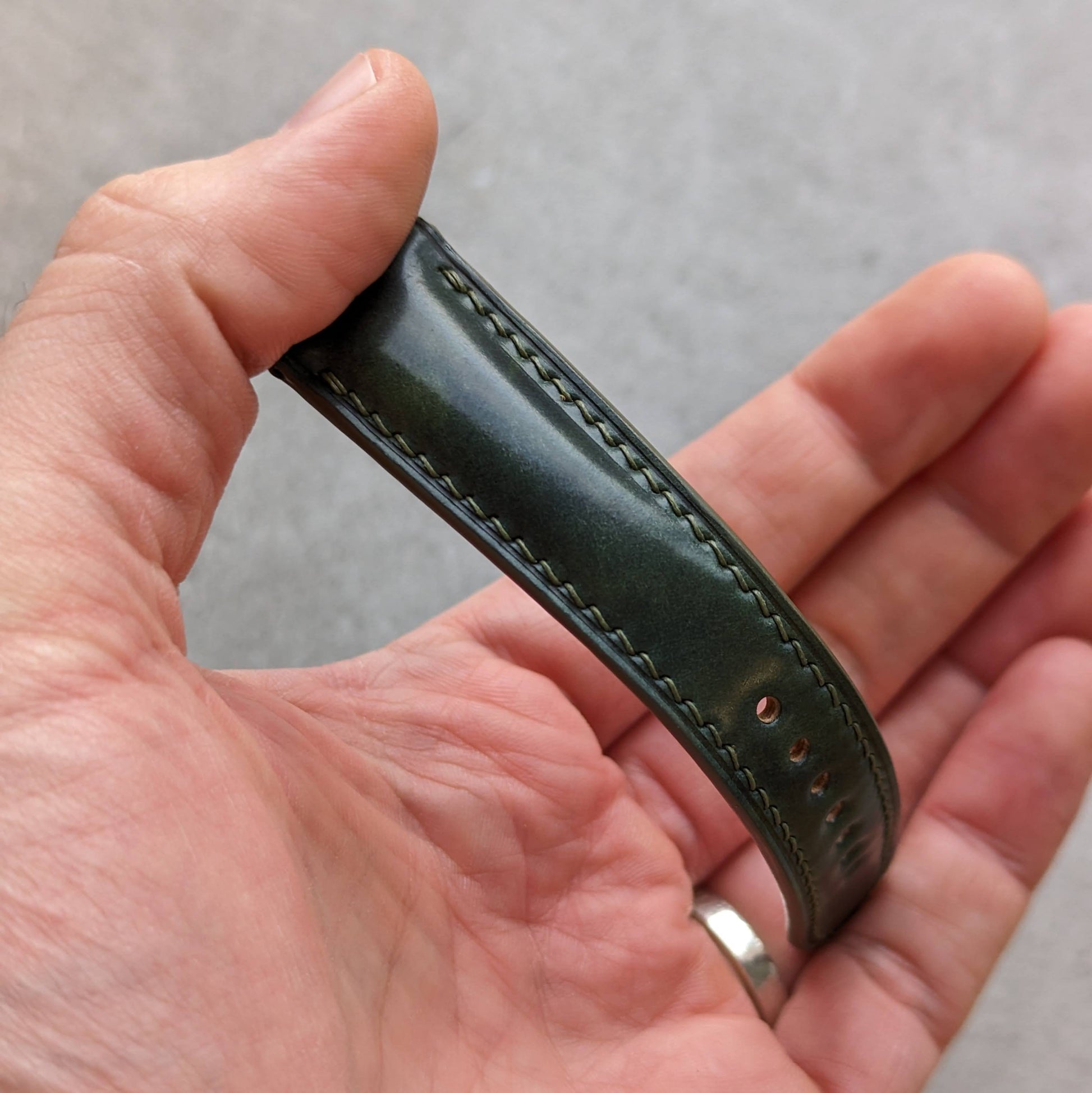 Shell Cordovan Watch Strap - Green Padded Marbled Museum