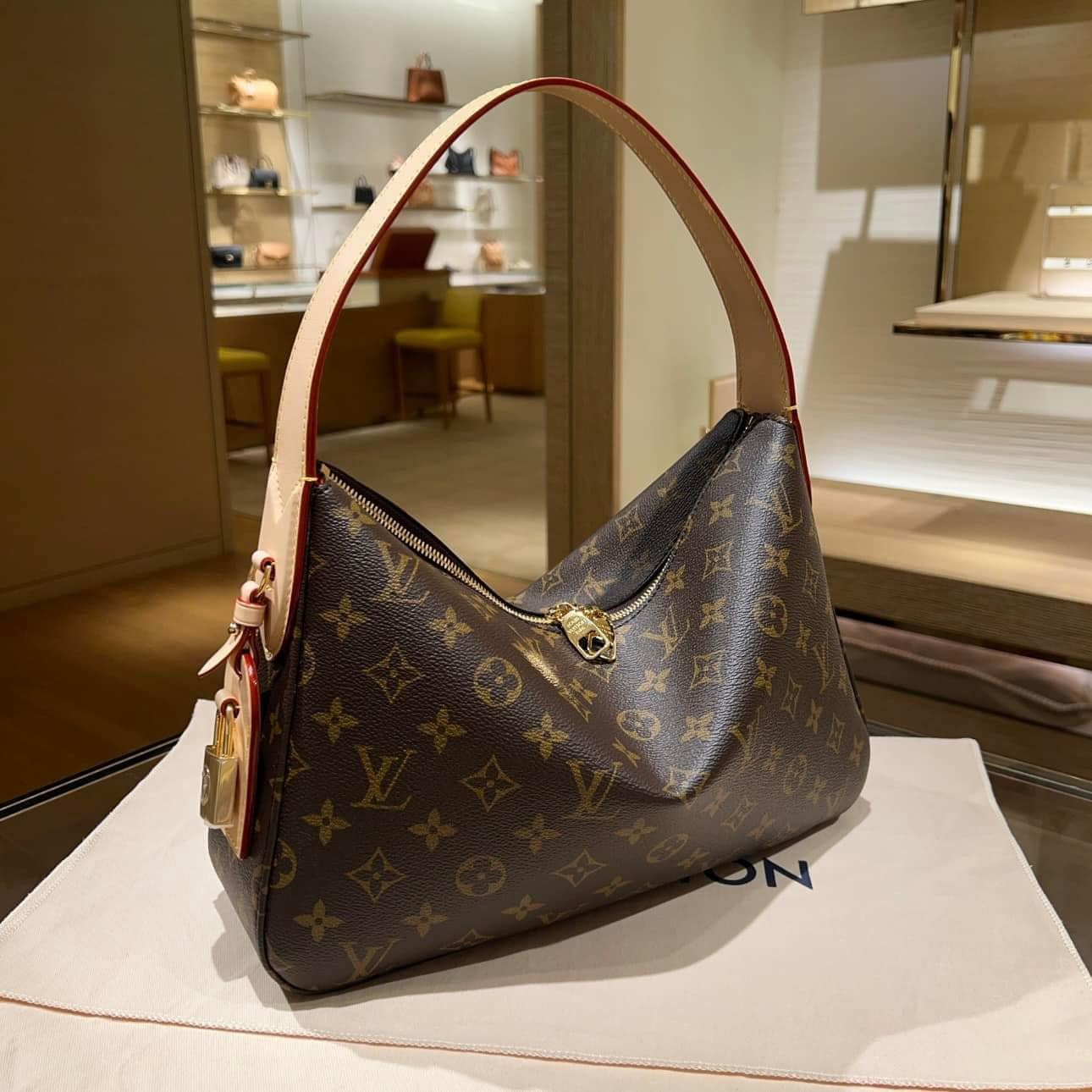 The Slouchy PM makes a sophisticated yet functional shoulder bag or work and weekend. It is crafted from the House’s iconic Monogram canvas in a distinctive silhouette that can be carried over the shoulder or by hand. This edition features a new signature: a padlock name tag that acts as a marker of heritage and craftsmanship.