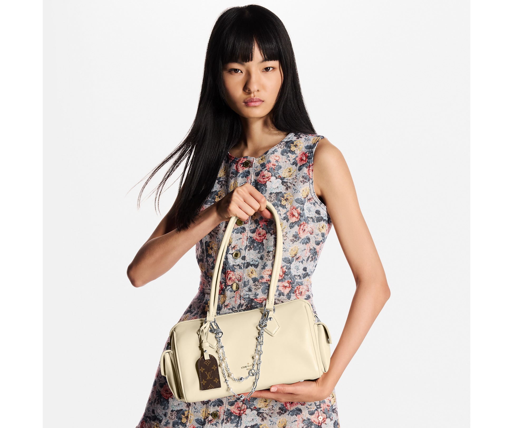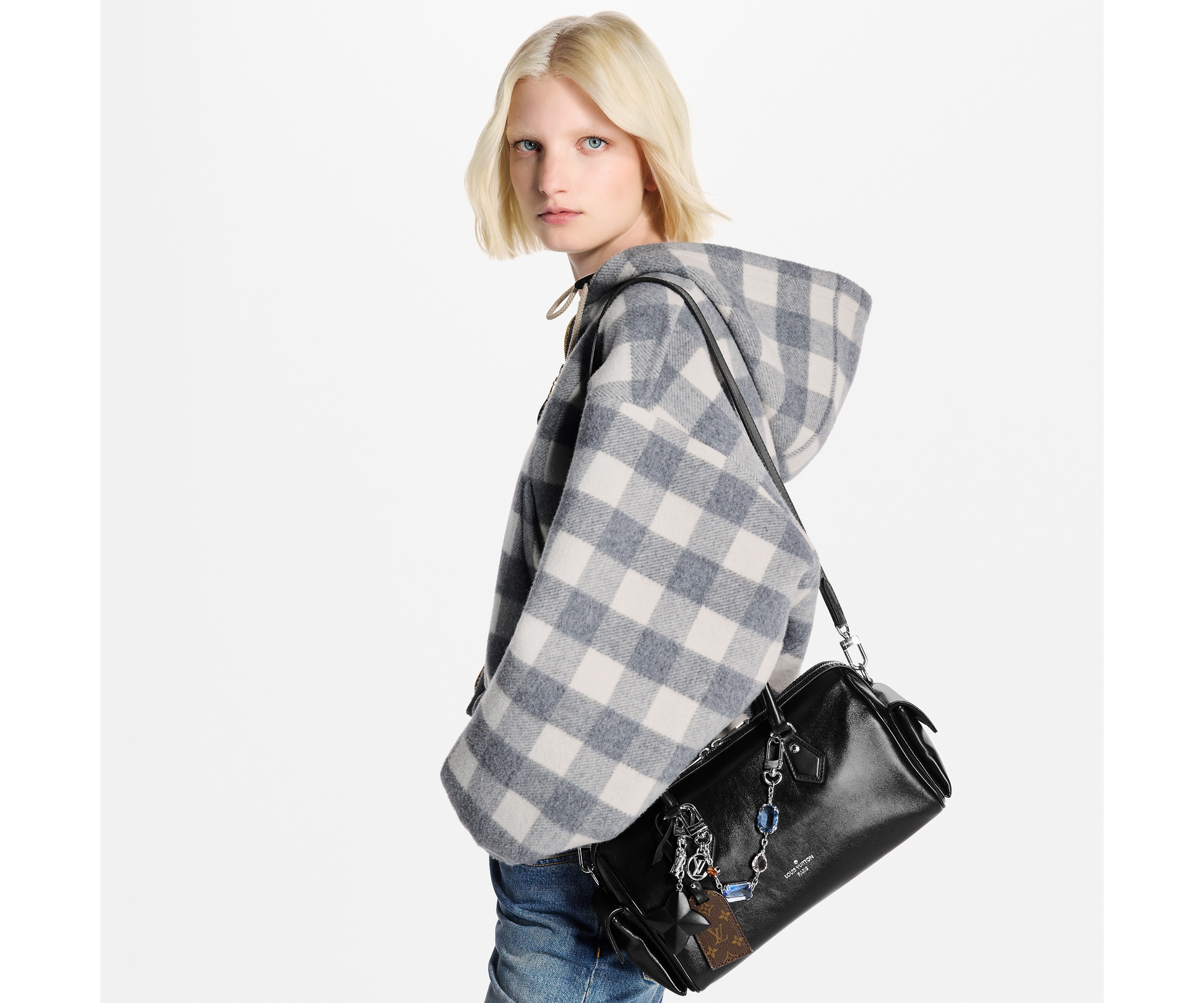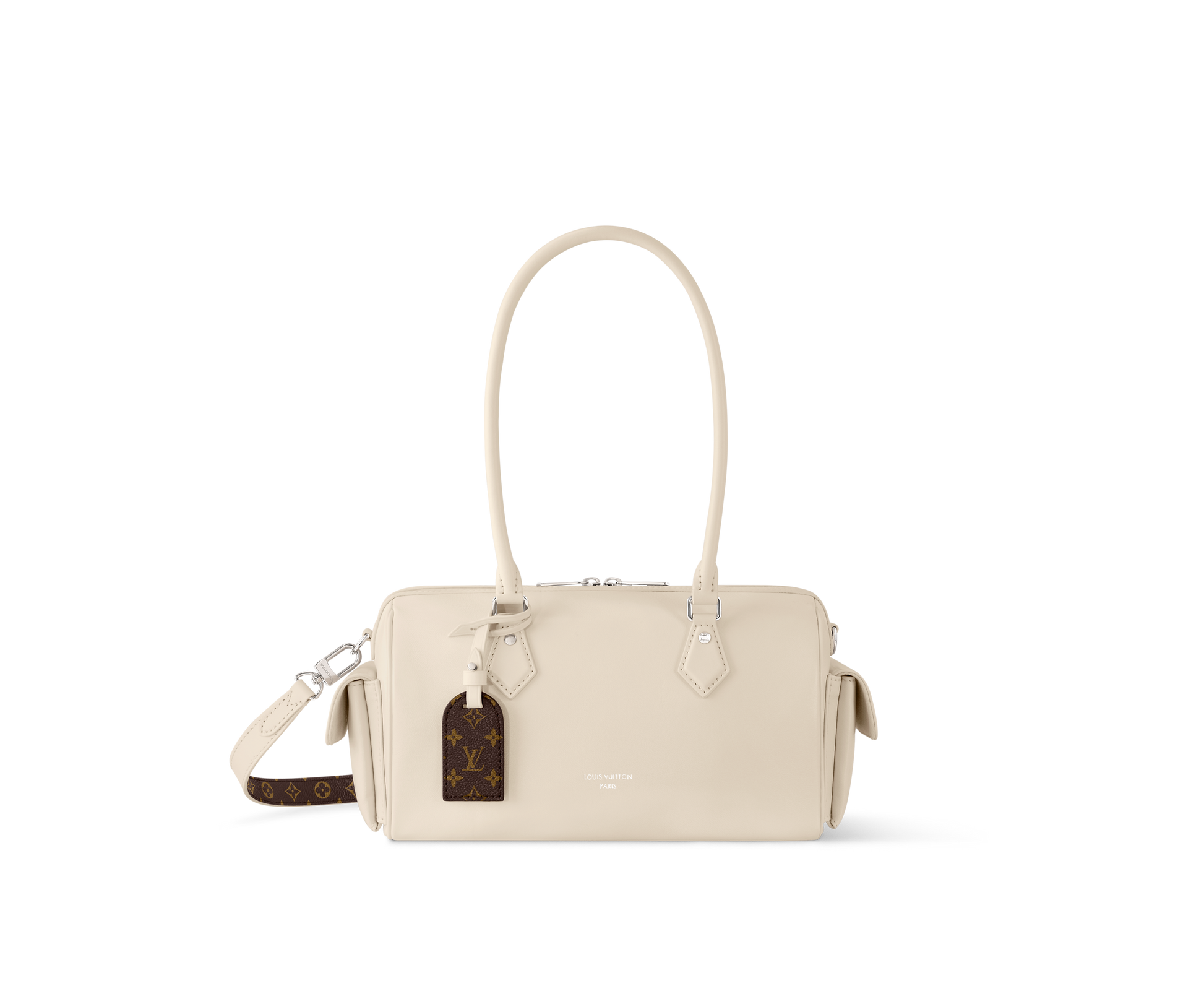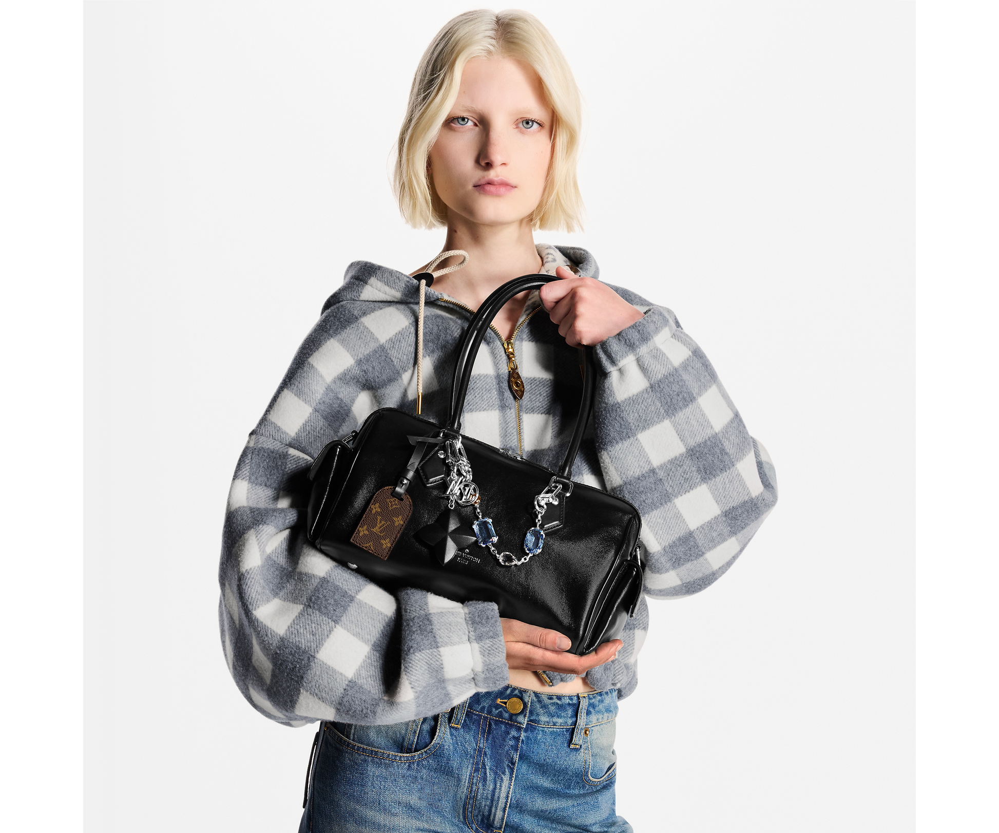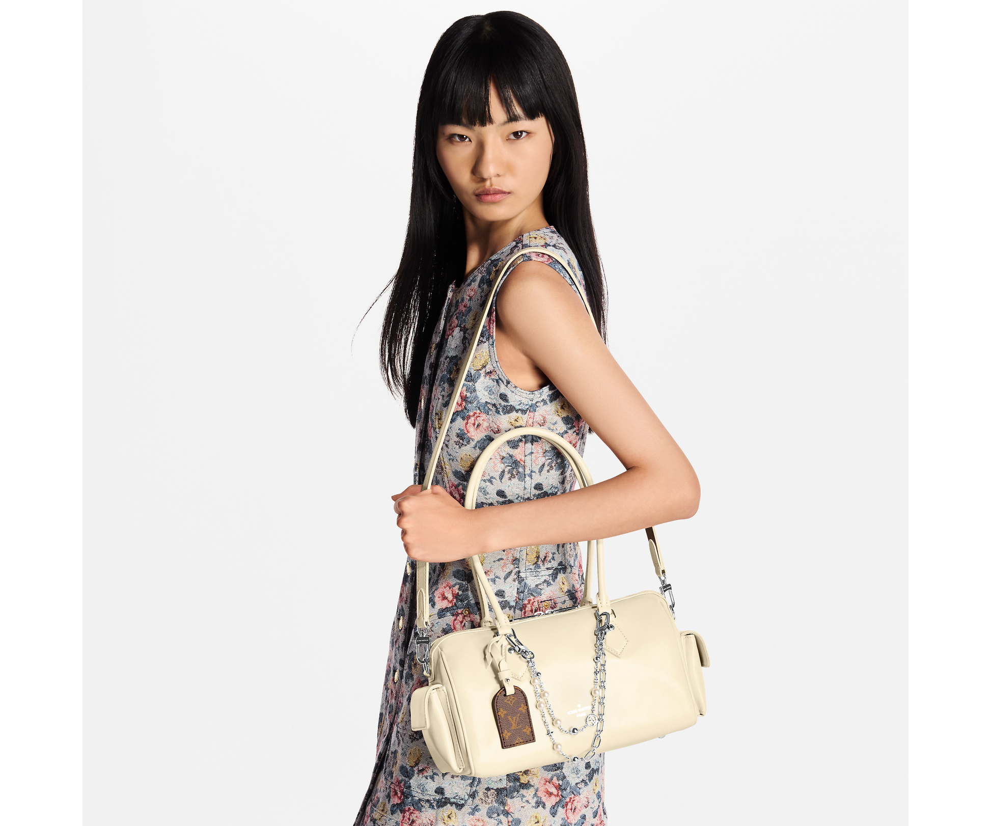Part of the LV Vibe collection, the Speedy Cargo reimagines the original 1930s design with a neo-rock edge. It is crafted from glossy lambskin and accented with a Monogram address tag, paying tribute to the House’s trunk-making heritage. Capaciously sized for everyday essentials, it offers multiple carry options thanks to the removable leather strap.