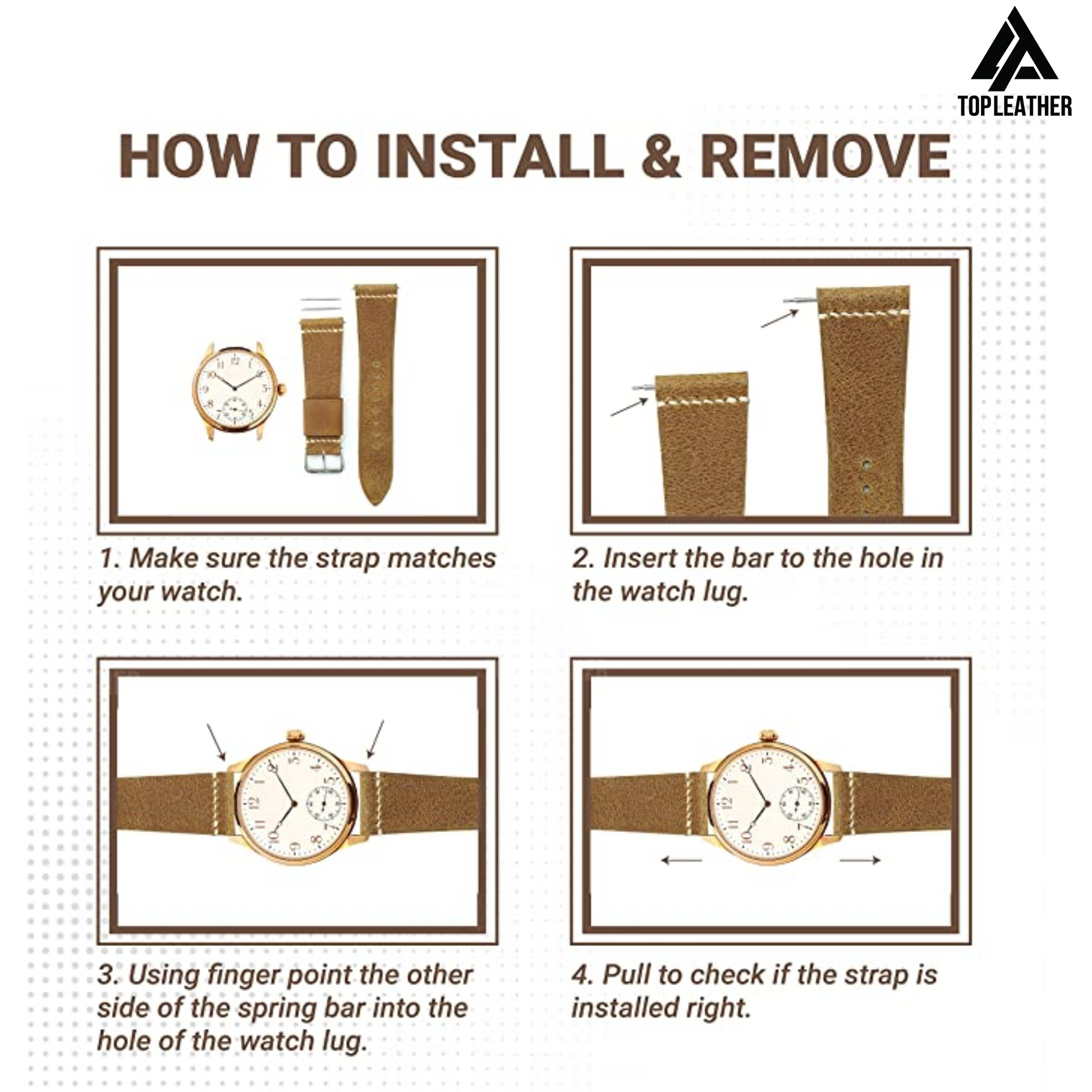 Take a ruler and measure the width between the two joints. Usually they will be about 18mm/20mm/22mm/24mm wide.(If you have a special request, please write a note to me in the order or email us for customization information topleather.company68@gmail.com)