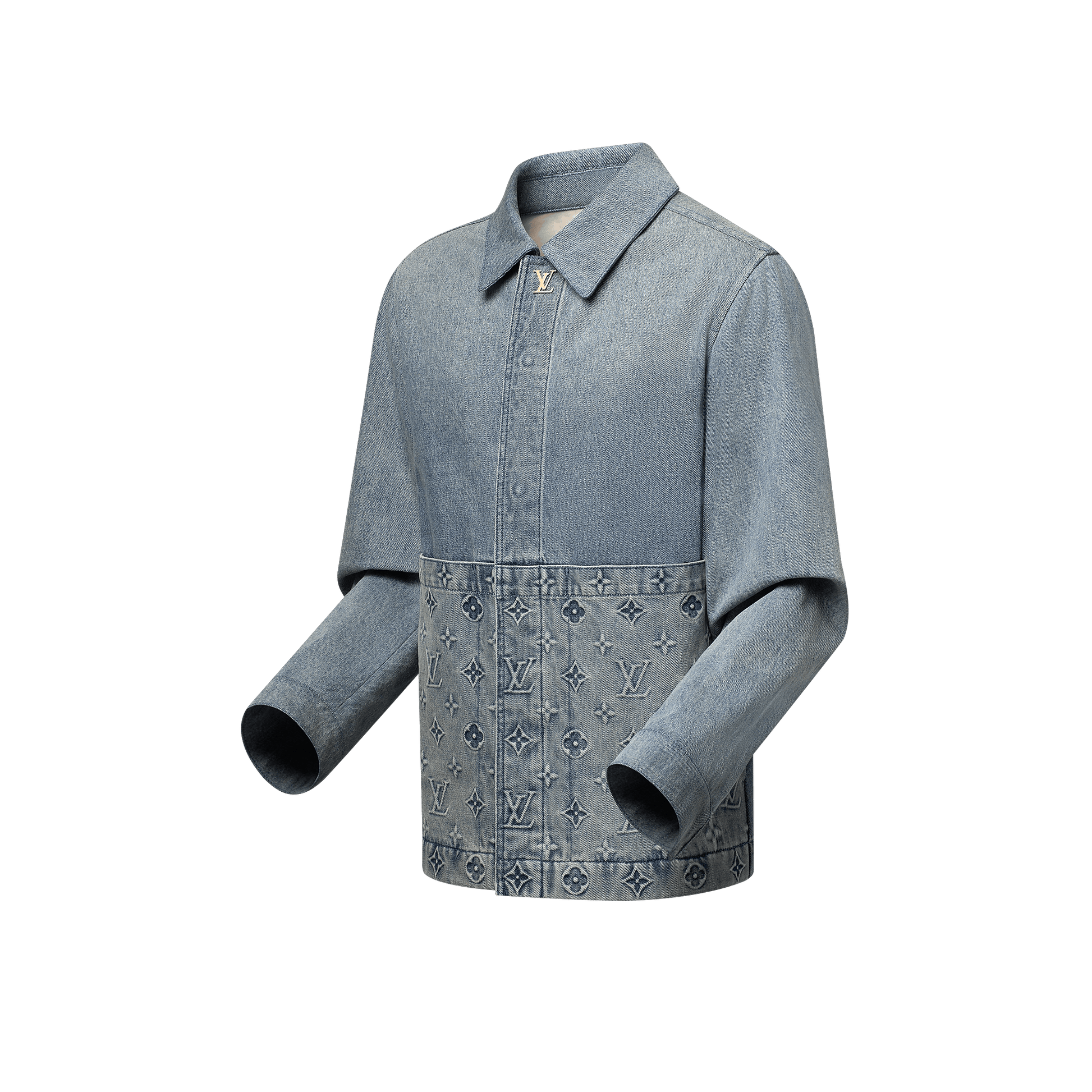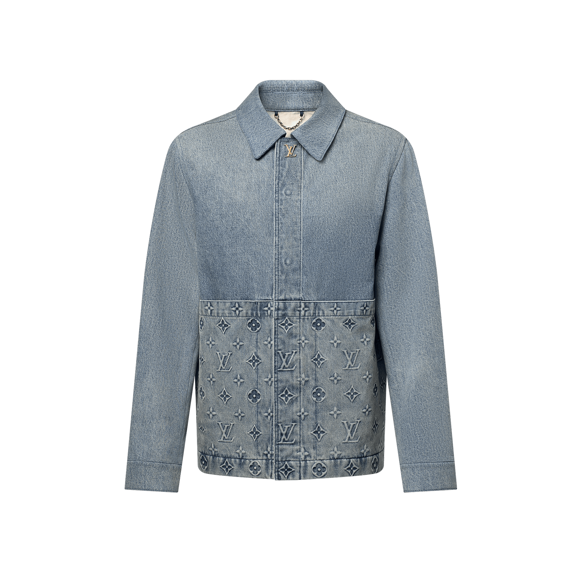 This washed denim jacket is a limited edition piece based on the Louis Vuitton Upcycling principle, which reinvents archive garments from previous collections. This jacket translates a short-sleeved shirt into a versatile midseason outer layer, which is adorned with Monogram-embossed patch pockets on the front. An ornamental LV top button adds a smart finishing touch.