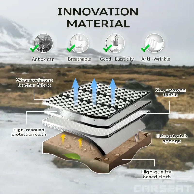 Made of high quality PU leather and treated with a protective coating to make them as durable as they are beautiful. 3mm of foam padding disperses heat, eliminating the struggle of red hot leather and keeping you cool on even the hottest summer days.