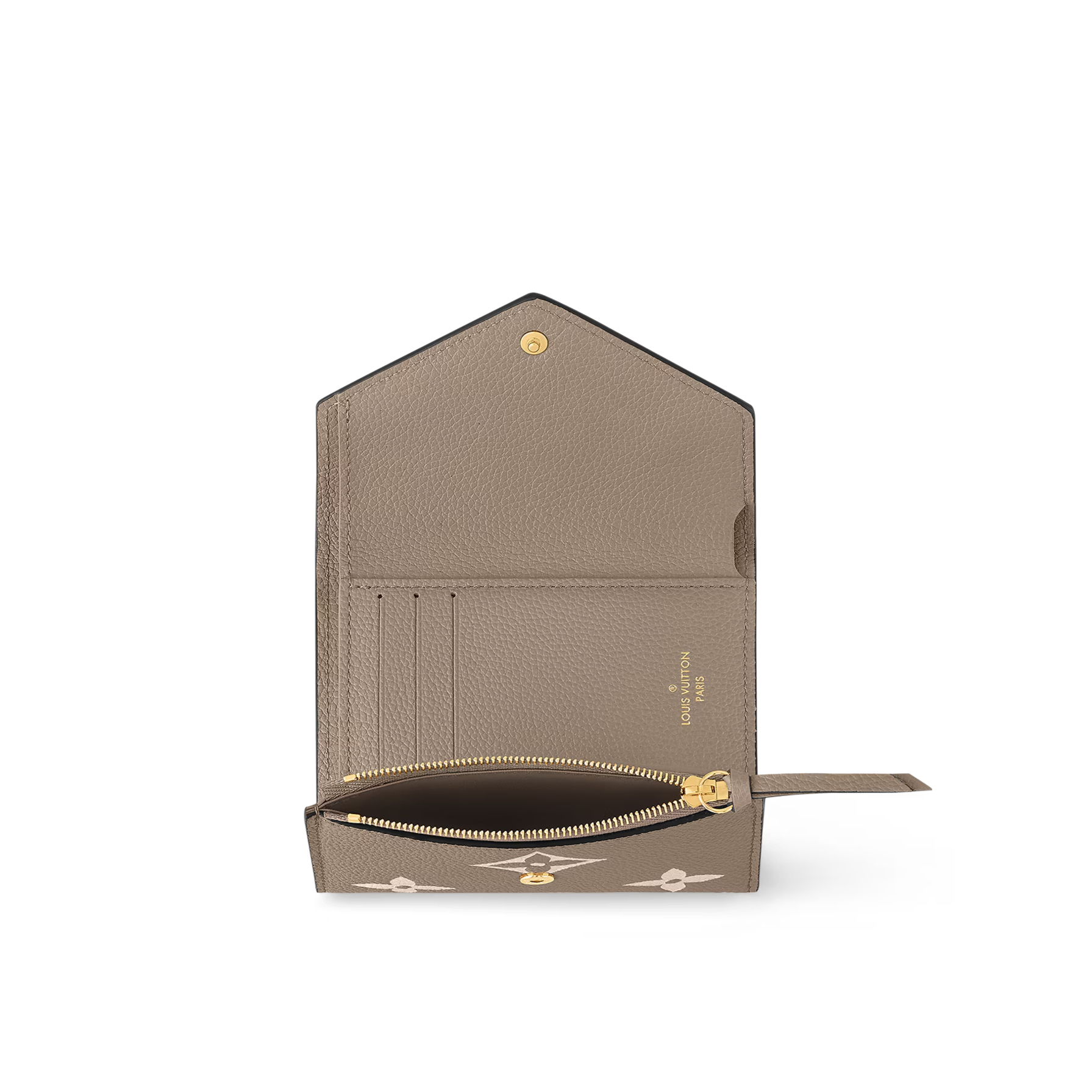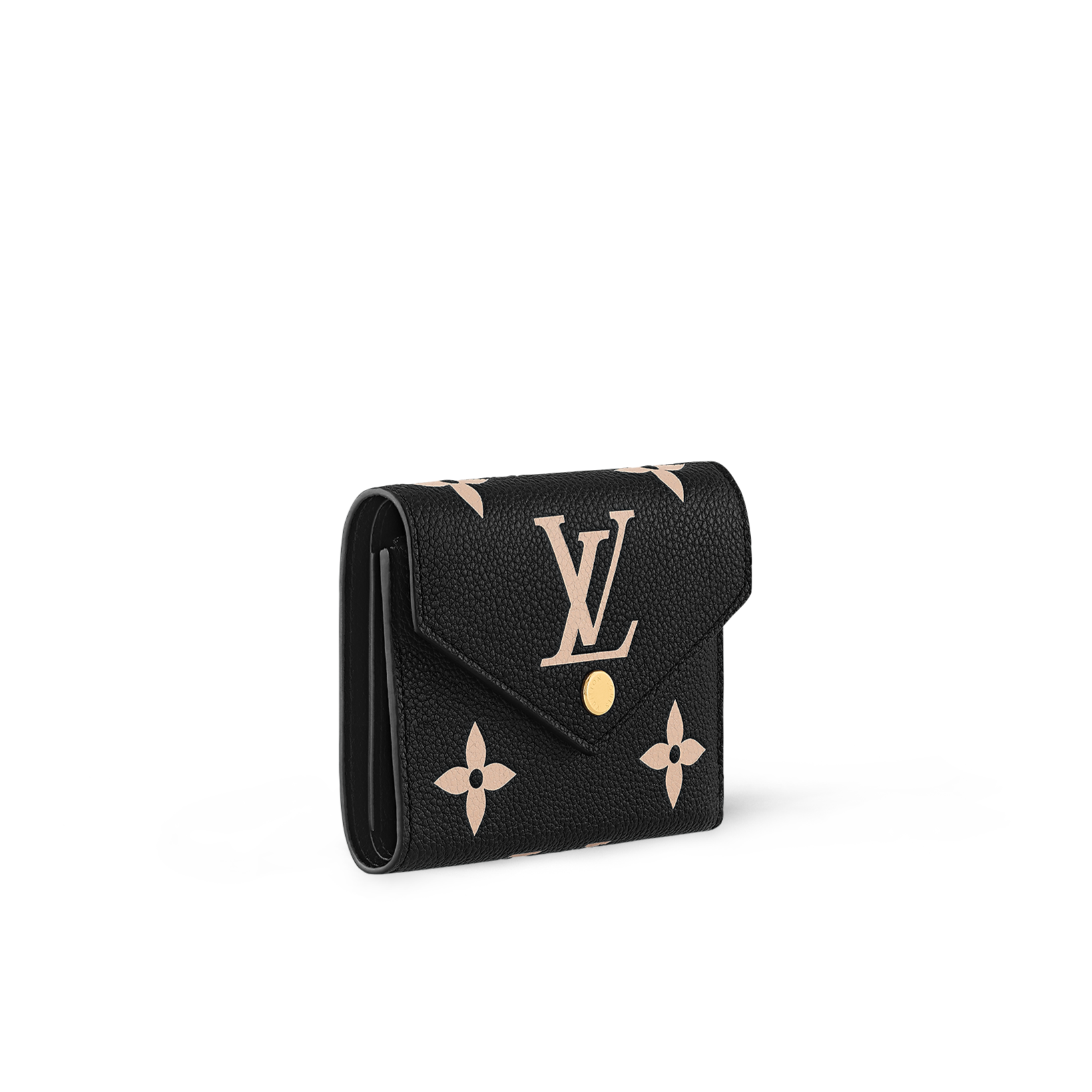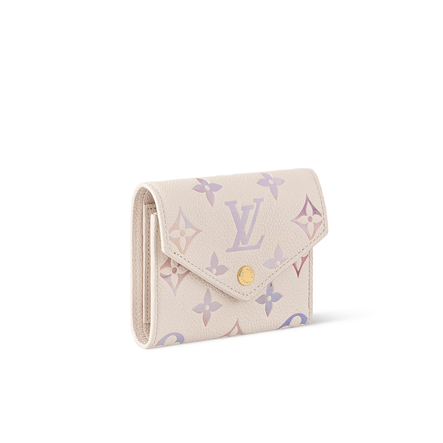 This version of the Victorine wallet is made from the Maison's classic Monogram Empreinte leather in the elegant Dream shade, accented with pale gold metal details. Inside there are multiple compartments for coins and banknotes, and six card slots.