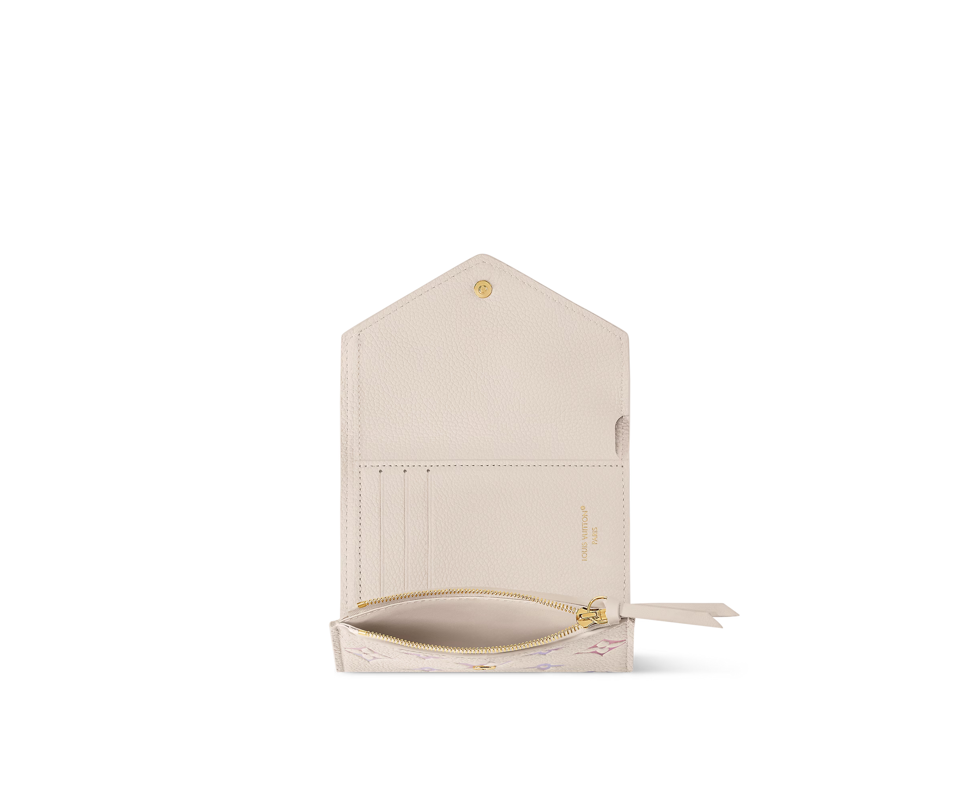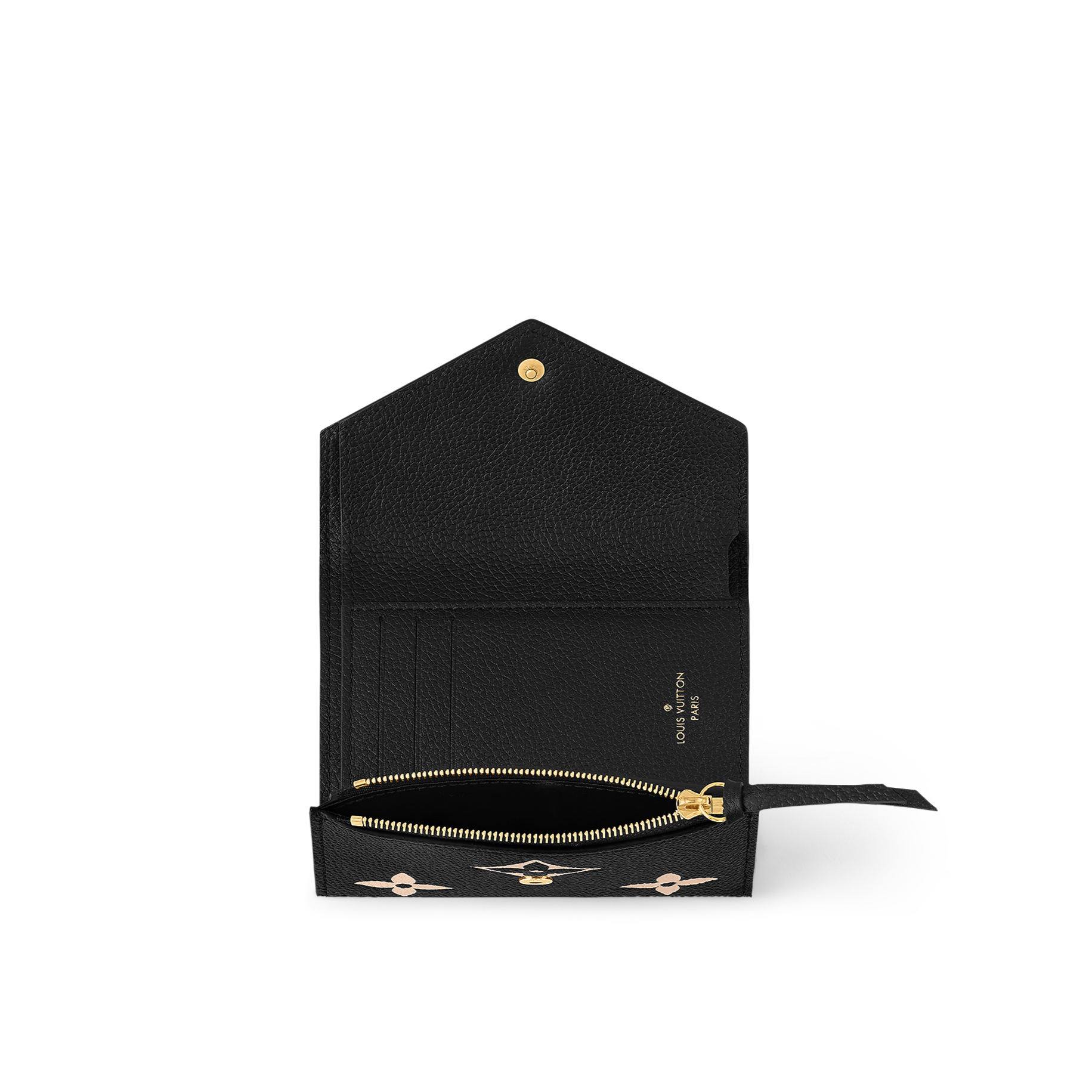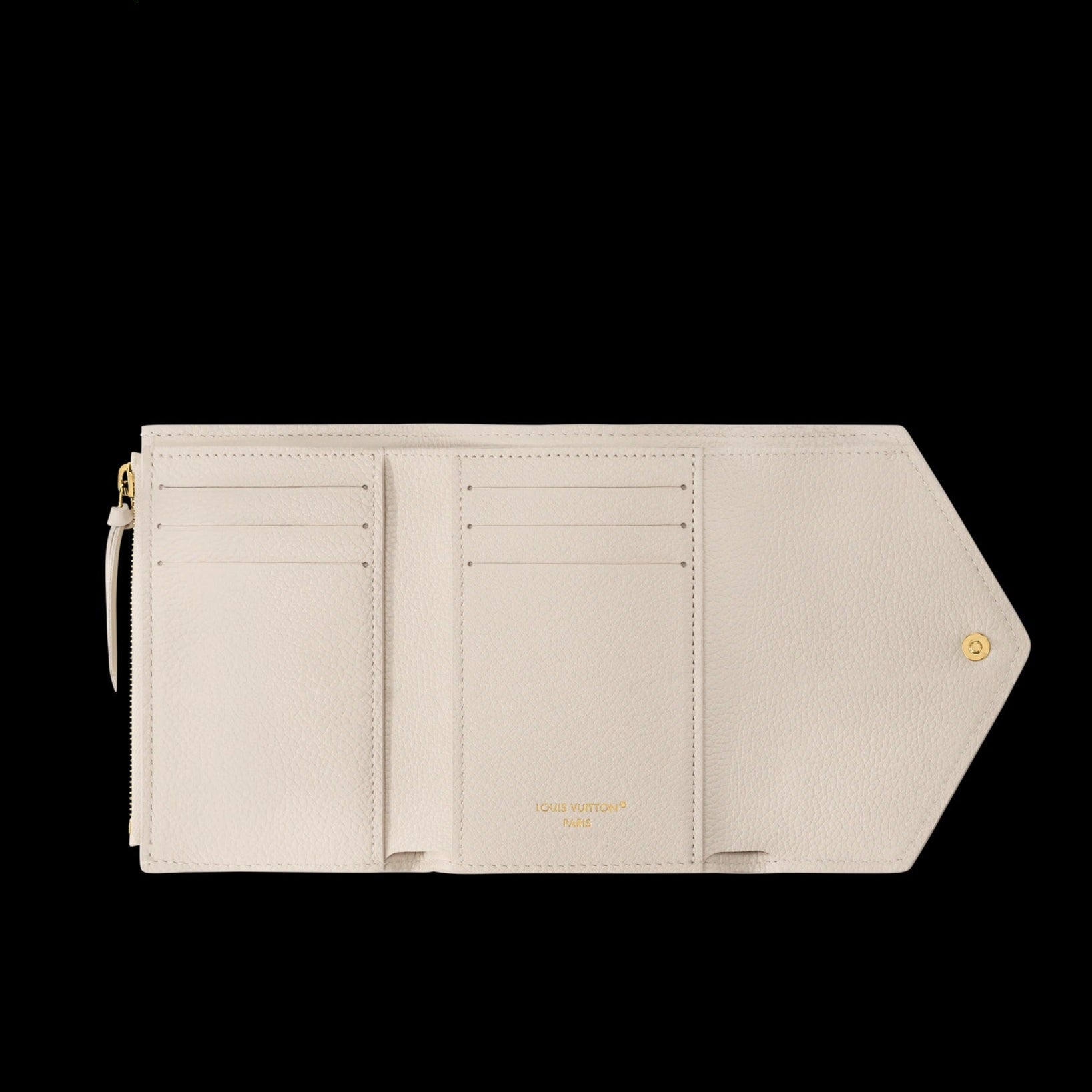This version of the Victorine wallet is made from the Maison's classic Monogram Empreinte leather in the elegant Dream shade, accented with pale gold metal details. Inside there are multiple compartments for coins and banknotes, and six card slots.