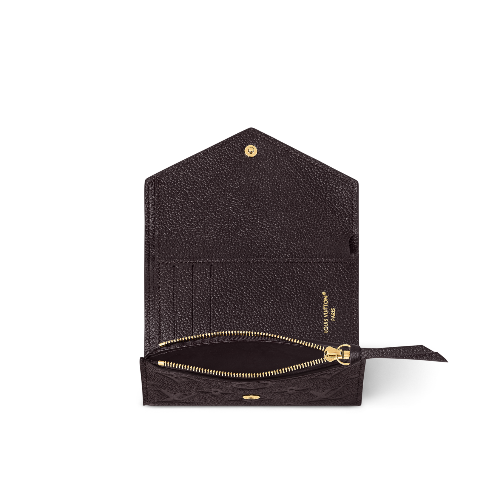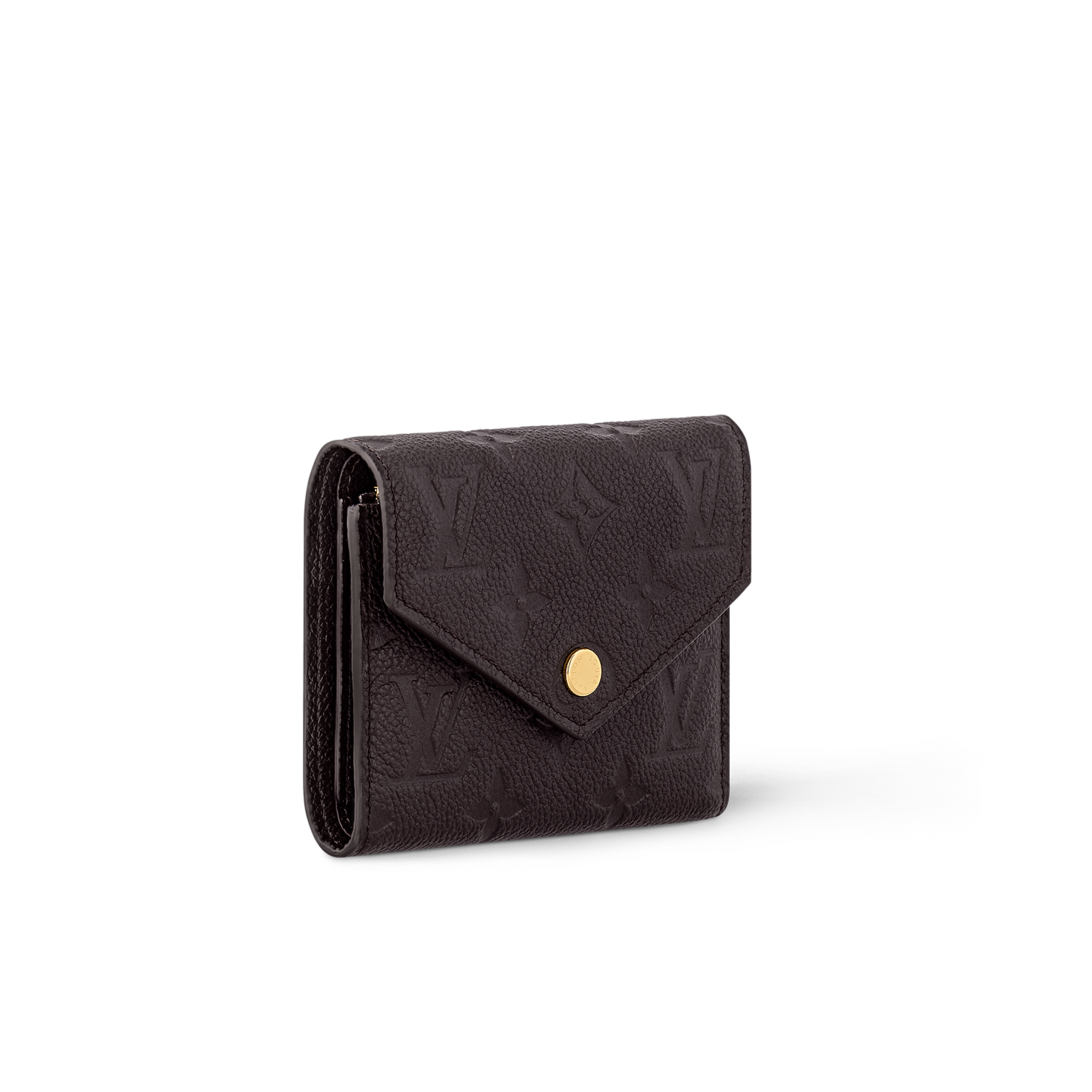 The iconic Victorine Wallet returns for the season in this elegant and versatile colorway. Crafted from signature Monogram Empreinte leather, the compact design is trimmed with grained cowhide and adorned with a delicate press-stud closure. The perfect choice for keeping bills and coins organized, it opens to reveal multiple pockets, as well as six card slots.