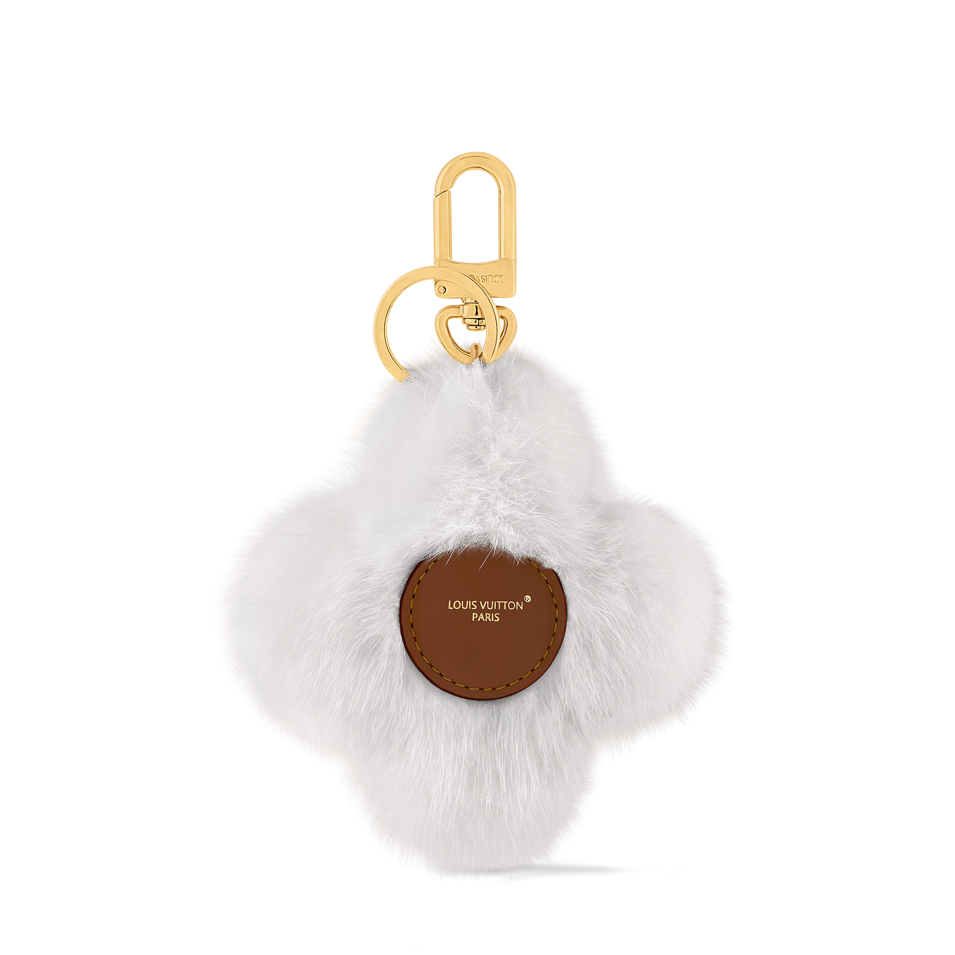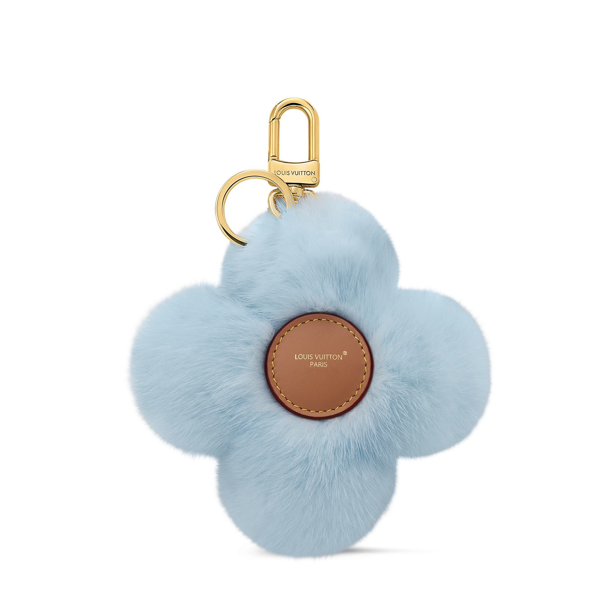 Louis Vuitton's iconic mascot, inspired by the circular Monogram flower, now appears in a new form on the Vivienne Fur keychain and bag holder. Vivienne's adorable face is crafted from leather, surrounded by soft mink fur and adorned with classic Monogram flower eyes.