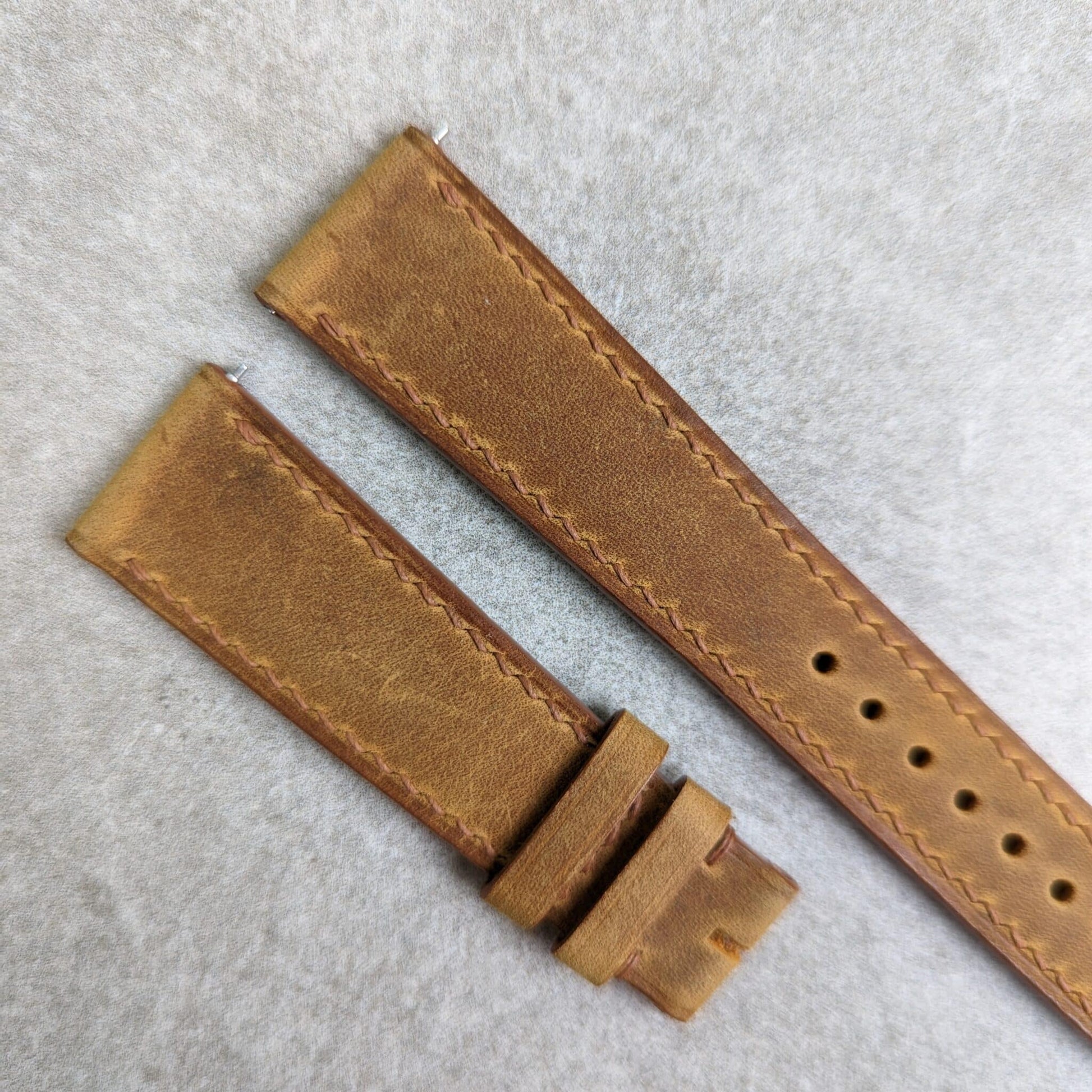 Wax Flat Calfskin Strap - Light Brown W/Matching stitching