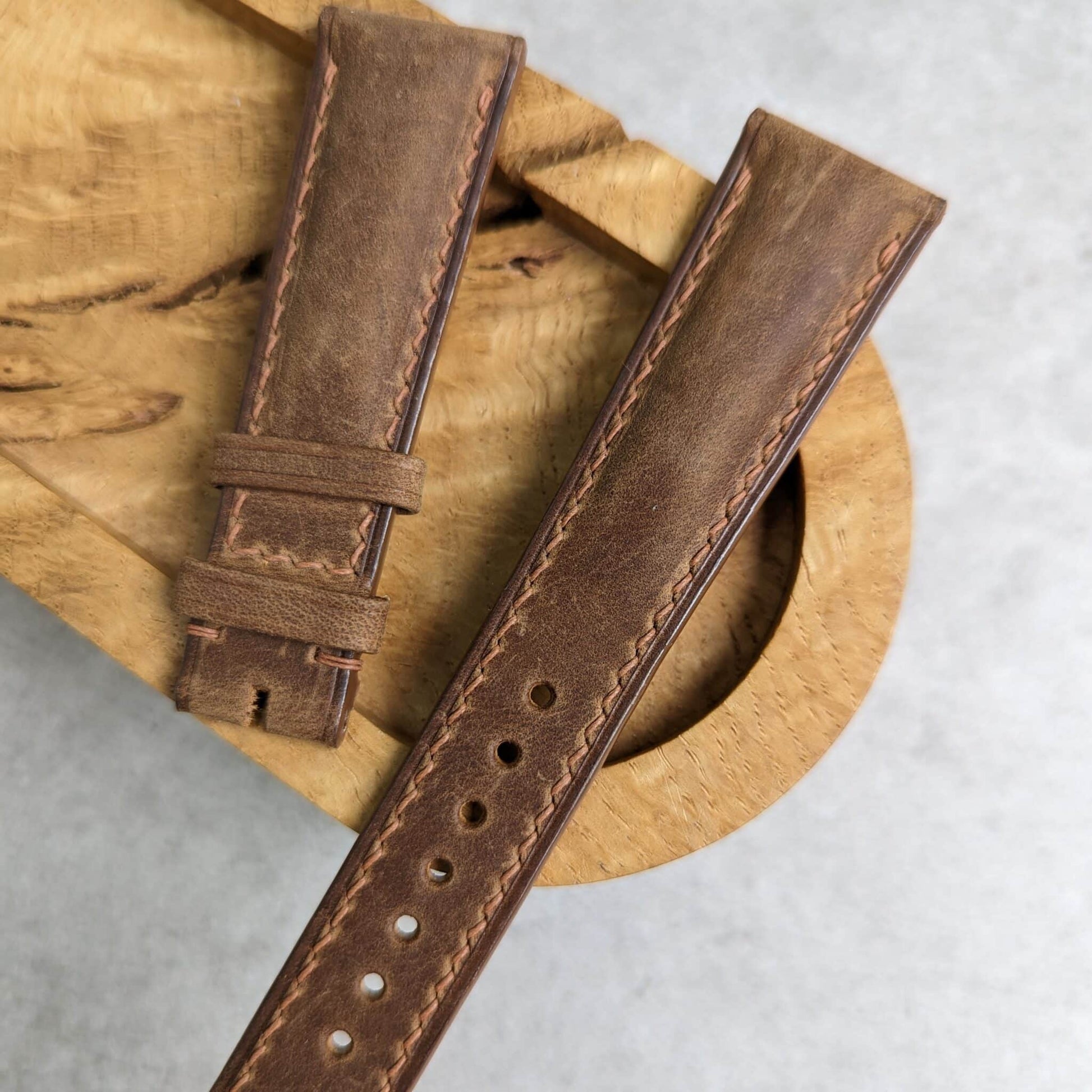 Wax Padded Calfskin Strap - Brown W/Matching stitching