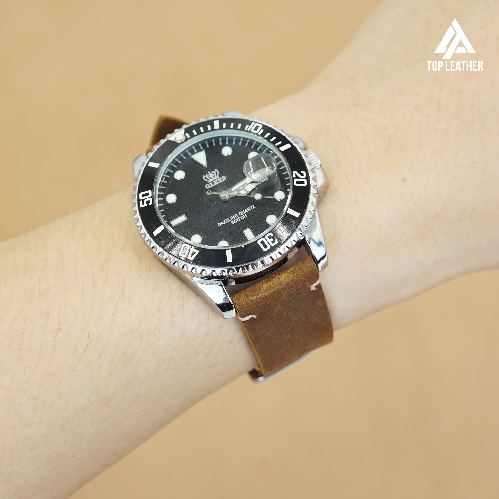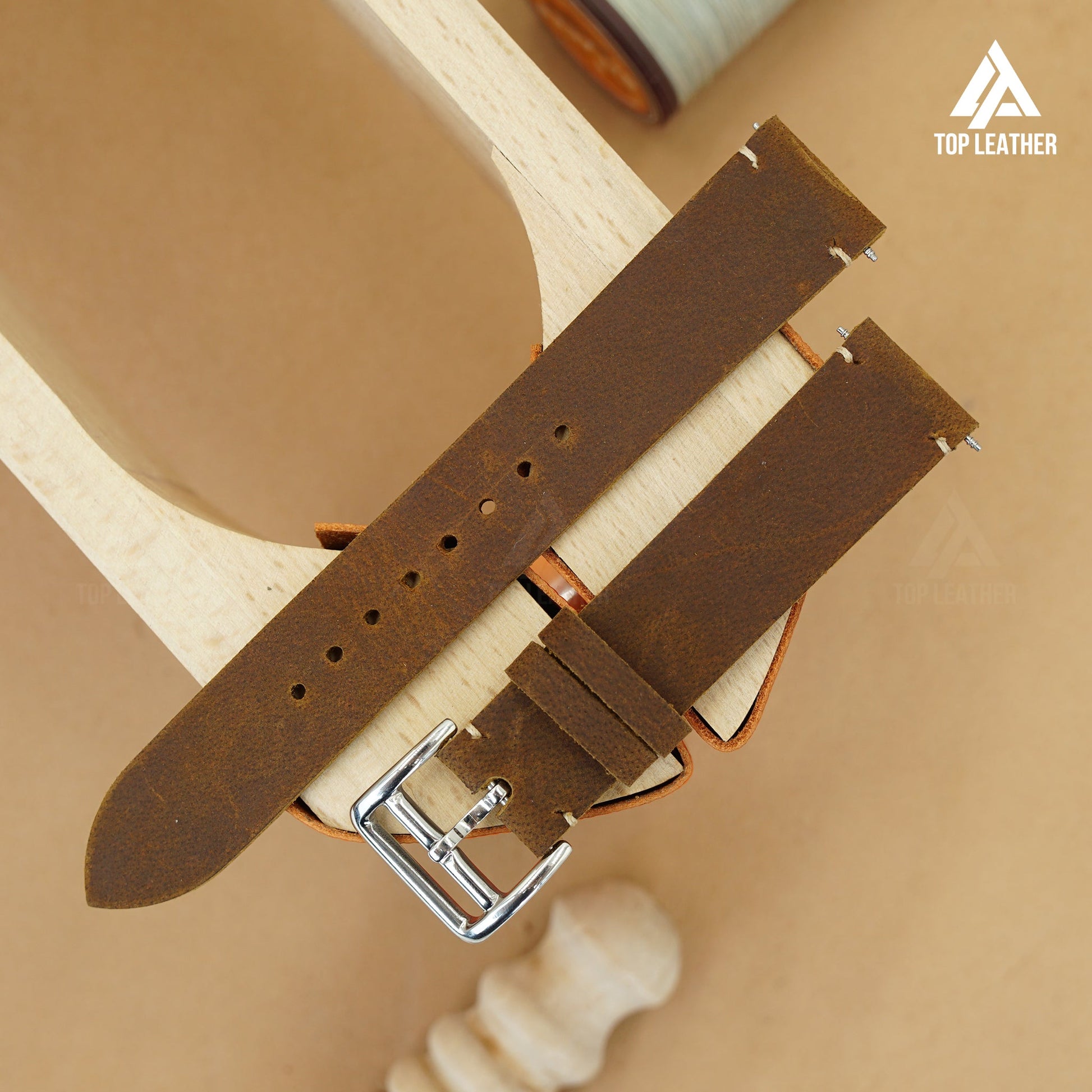 TopLeather Waxed Leather Watch Strap – Compatible with Apple Watch & Samsung Galaxy Watch (Chocolate Brown)