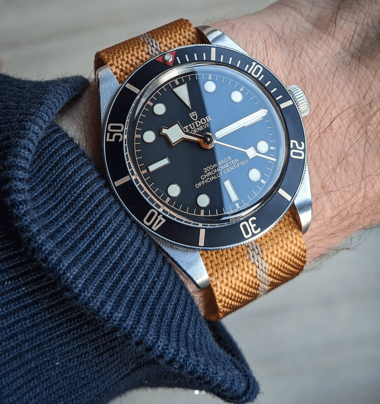 A hybrid between Perlon and Fabric straps, my premium branded woven single pass Fabric watch strap is one of the finest and most comfortable examples of a Fabric strap that you will find. Super comfortable to wear just like other Fabric straps but with a beautiful finish with wonderful depth due to the nature of the weaved alternating threads.